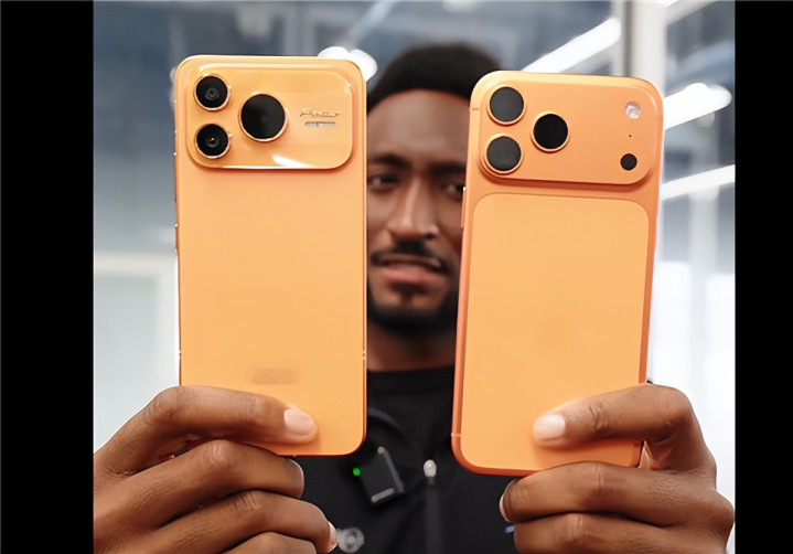 为了更像苹果,不仅颜色用了相近的橙色,还在手机后置摄像头模组左下角添加了一个假镜头,使其看起来更像iPhone 17 Pro和iPhone 17 Pro Max。