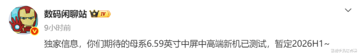 而根据博主透露的信息,6.59英寸中屏设计是小米Civi 6的明确标签,结合系列一贯的轻薄基因,这一尺寸既能保证日常单手握持的舒适度,又能兼顾影音娱乐的视觉体验。