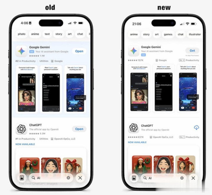 二、App Store 搜索广告样式调整,广告与结果更难区分