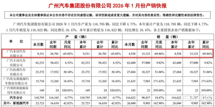 广汽集团1月份唯一出现销量同比下滑的品牌就是广汽本田,1月销量跌至4558台,同比下滑69.86%,相比去年12月超过5万台的单月销量,环比下滑更是高达91%。说实话,2026年开年首月广汽本田就出现比“拦腰斩”还可怕的同比环比双下滑,亚搏真的是出乎意料。