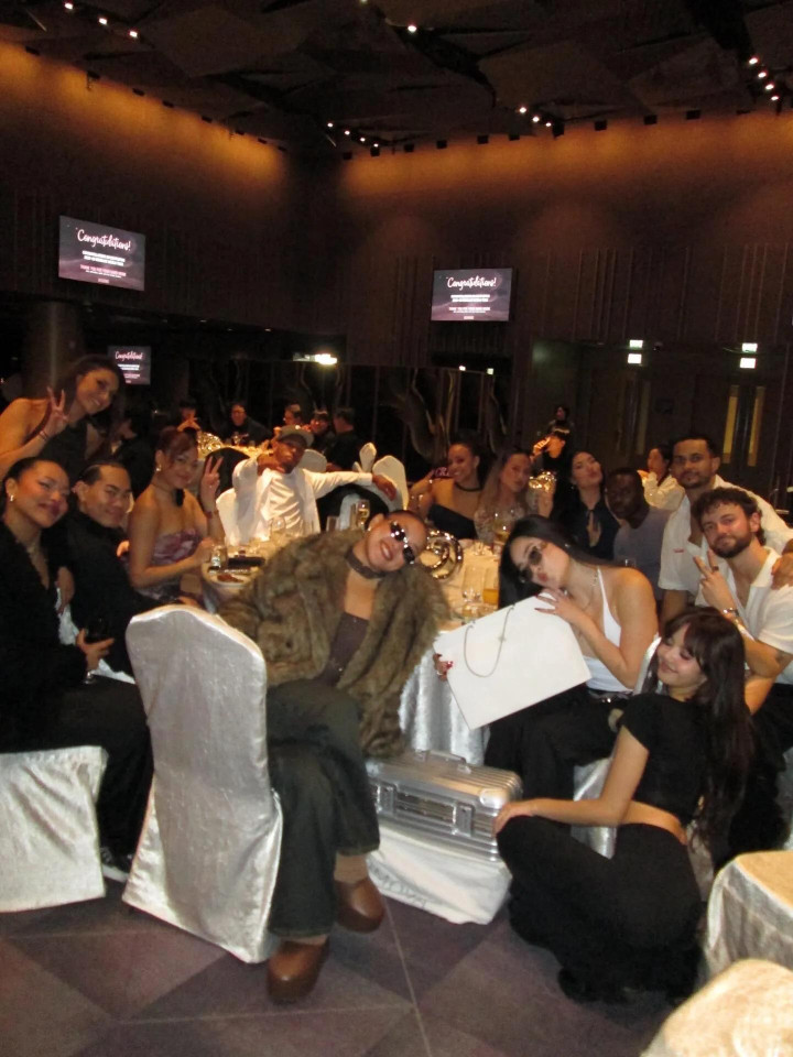 这场派对上的人很多,Lisa蹲在地上和大家拍了自拍照。Lisa身材娇小,她的”亚洲蹲“很标准。蹲在地上的Lisa臀很翘,真是个性感的女孩。
