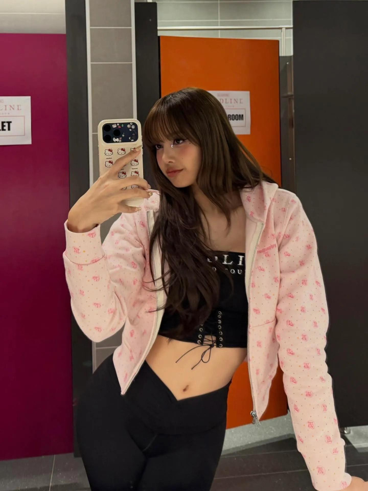 Lisa身上穿的这件粉色上衣拉上拉链就显得很乖巧,和在派对上豪放的她完全不一样,白天的Lisa和夜晚的她反差很大。