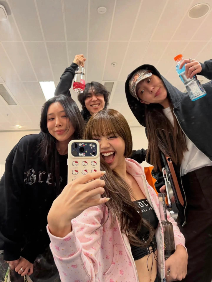大家在这场演唱会之后的派对玩的太疯了,Lisa抱着一瓶酒在喝,没想到她酒量这么好。