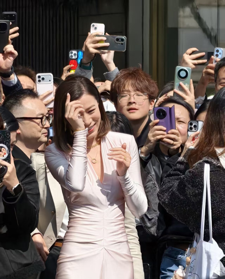 在香港K11的线下活动上见到了著名女星佘诗曼,穿了一身珠光粉色礼服的她,一改往日在屏幕上知性强势的大女主形象,本人很美很温柔笑起来眼睛弯成一道月牙很好看。