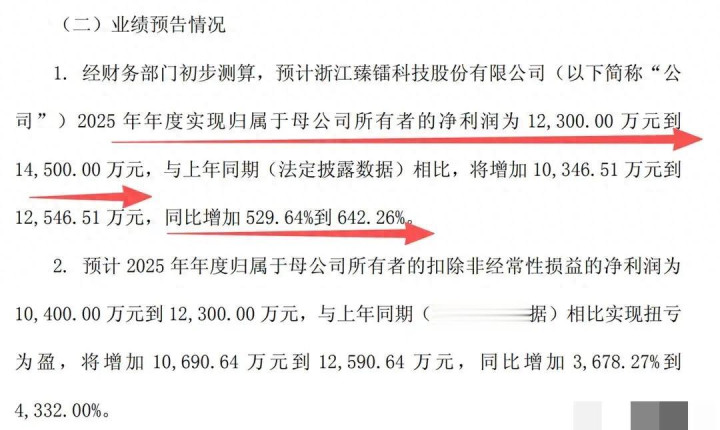 · 臻镭科技:做射频芯片的,预计净利润1.23到1.45亿,同比暴增530%到642%。它的产品是卫星通信的核心部件,这个增长意味着订单实实在在地落地了。