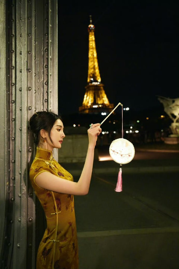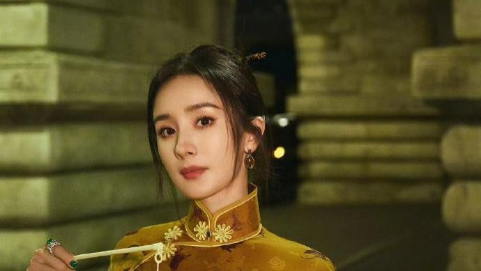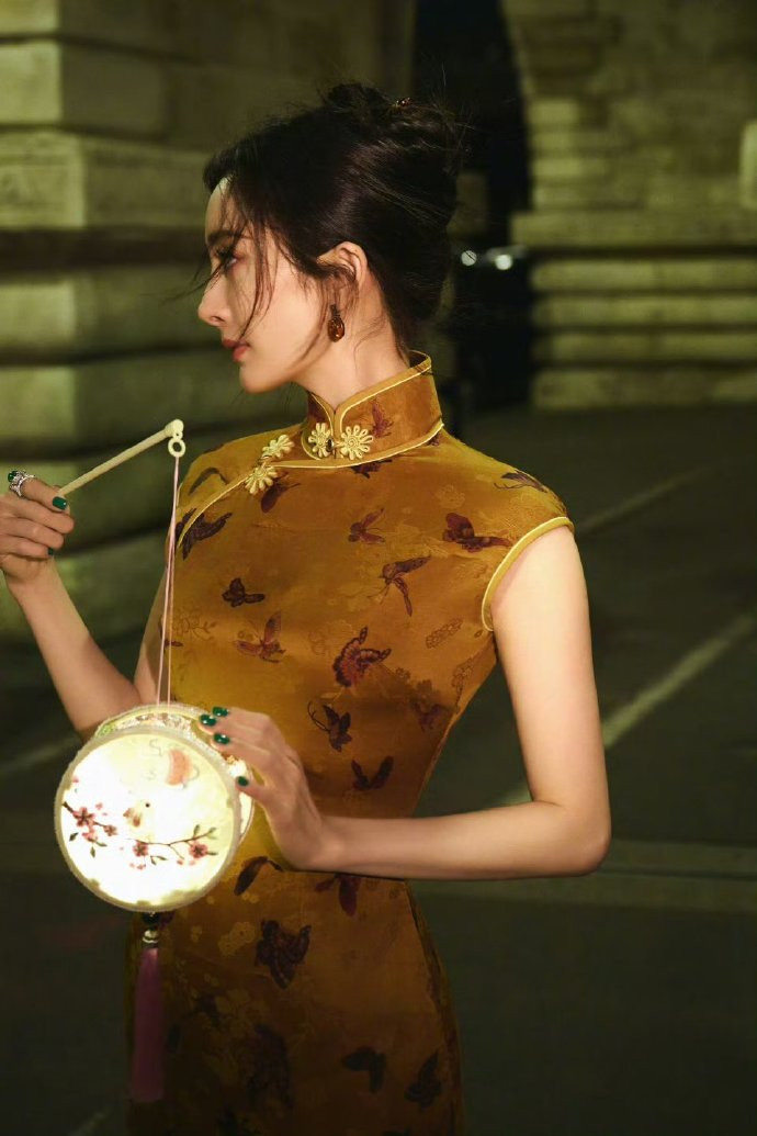 杨幂的中式旗袍,在国外拍这么样的妆造,更有感觉!