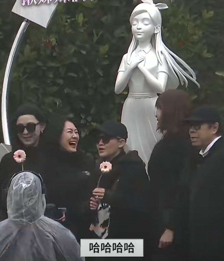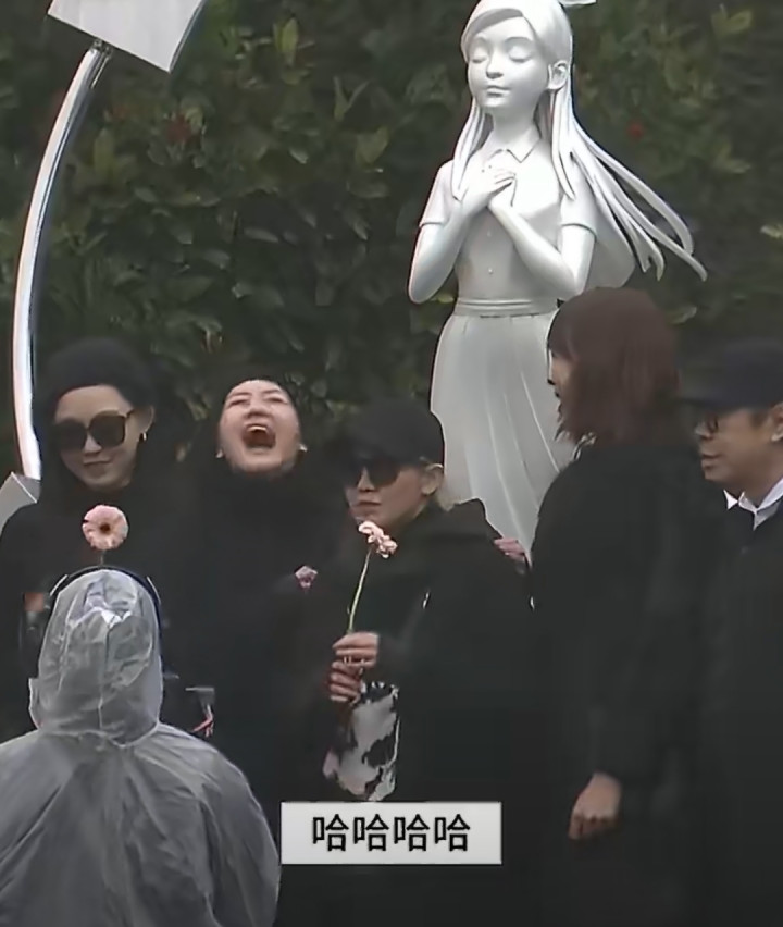 小S在仪式开始的时候,一直都是悲伤难过的模样,眼泪不知道流了多少,说话也都是哭腔,但在最后合影的时候,不知道是姐妹相见,聊的话题太搞笑了,还是出于什么原因,她突然就很开心的仰天长笑,笑声中透着畅快和得意。