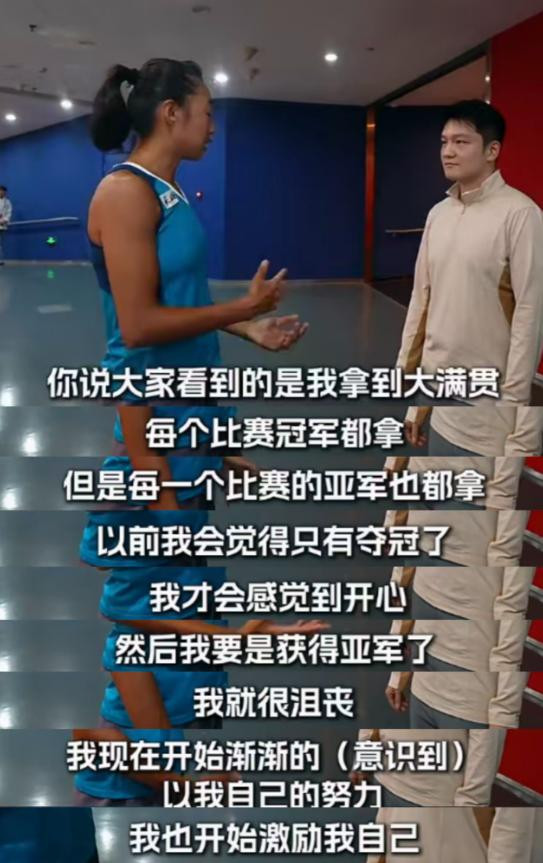 而樊振东的那句“大家看到的是我拿到大满贯,但每场比赛的亚军也都拿”却深深点醒了自己。