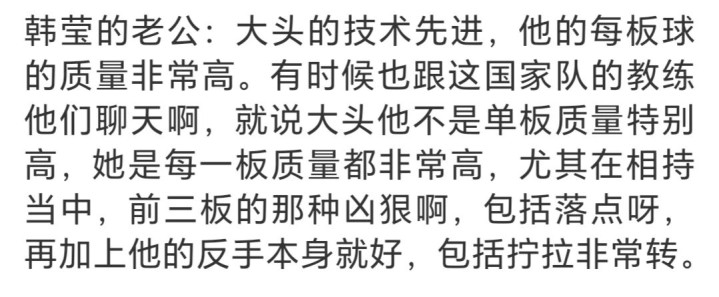 近日,德国华裔乒乓球运动员韩莹的老公雷洋在直播中谈到了中国男乒现役两位奥运会樊振东、王楚钦以及世界乒坛历史最佳运动员马龙。