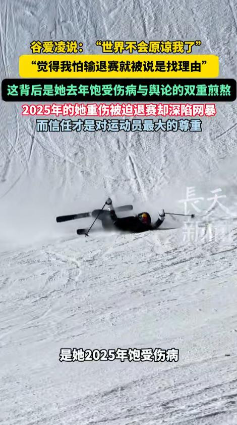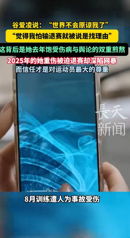 谷爱凌2025年全年伤病不断,双踝挫伤、肩部骨折、人为事故受伤,再叠加退赛引发的网暴争议,她的身心状态已经濒临极限。
