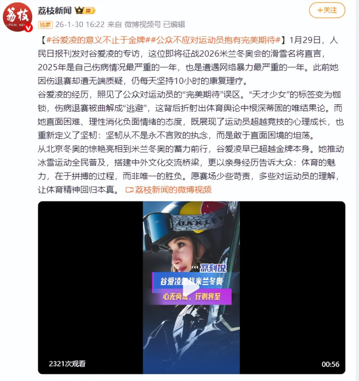 央视体育、《人民日报》等权威媒体纷纷发声,呼吁关注运动员健康,摒弃唯金牌论,停止将退赛污名化——伤病本就是竞技体育的常态。