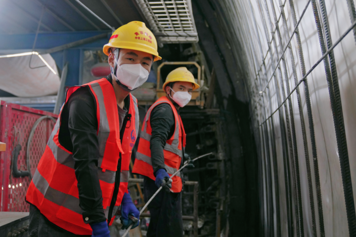 寒冬时节,山间气温仅有个位数,隧道深处却一片火热。开挖、防水、扎钢筋、浇筑……各施工组有序衔接,环环相扣。