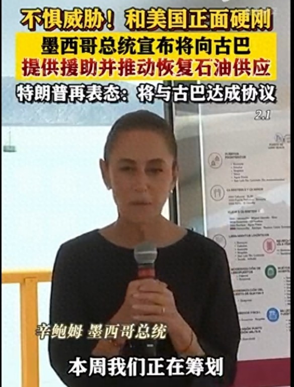 墨西哥这波操作就是“和美硬刚,给古巴撑腰”,瞧这姿势,有点像家长会上一方强势护娃,一方死磕规则。2月1日,墨西哥总统辛鲍姆高调宣布,要给古巴送吃的、用的,还得烧的——石油。不是小打小闹那种“走亲戚”,这是明着和美国叫板,“你不让送?咱们偏要想办法送到!”