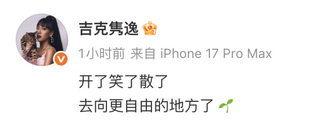 歌手吉克隽逸表示他“去向更自由的地方了”。