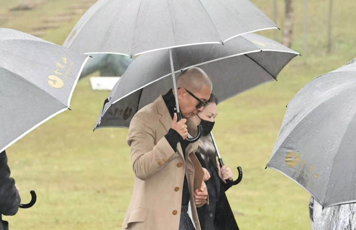 S妈最开始是跟着工作人员到场的,工作人员把她从车里扶进了金宝山墓地的休息室,她全程低着头,脸上戴着口罩,心情应该是相当的复杂和痛苦的。