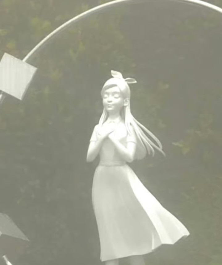 大S的雕像也终于揭开了神秘的面纱,雕像是一个穿着白色长裙,长发飘飘,戴着蝴蝶结发箍的少女,五官和大S有五六分相似,眼睛是闭着,双手叠放在胸口,看着像是在许愿。