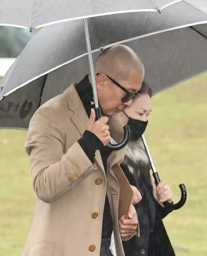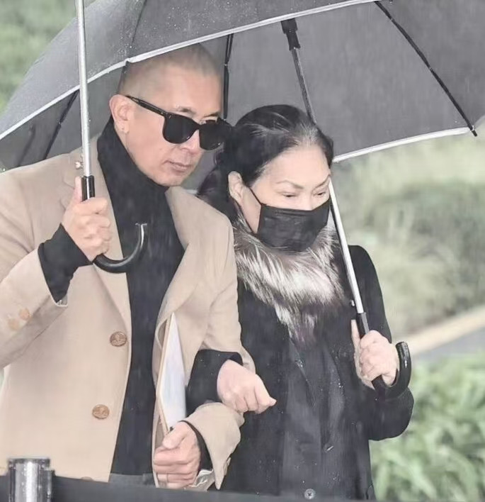 入场时,他与黄春梅一同现身,尽管两人各自打着伞,但黄春梅贴身挽着具俊晔的胳膊。