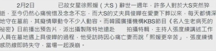 而且,韩综已经放出预告,把具俊晔在墓地,痴情守护大S的日常录制成节目。