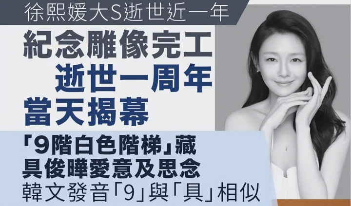 媒体渲染说,整座雕像的设计满是爱意密码,九阶白色大理石台阶蜿蜒成S形,既呼应大S的名字,韩语中“九”与“具”同音,又藏着具俊晔和大S相守的誓言。