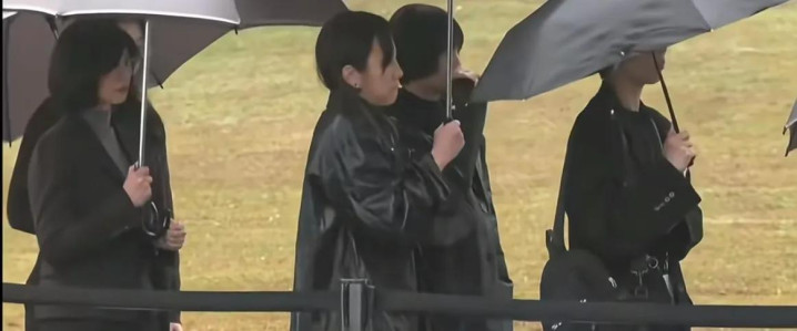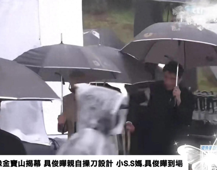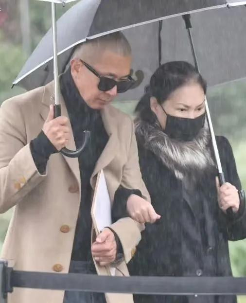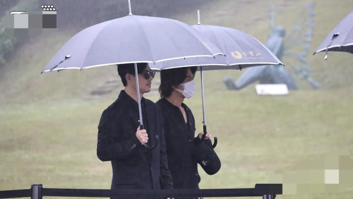 小S也穿着一身黑,戴着墨镜,想来是怕大家看到她哭到红肿的眼睛,许雅均给她撑着伞,搂着她的肩膀,给她最好的陪伴和安慰。