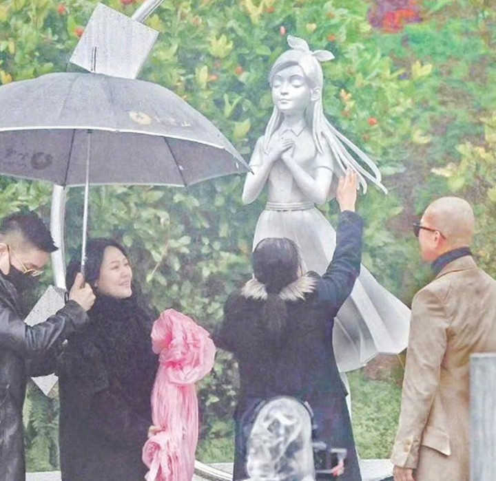 2月2日,大S去世一周年。具俊晔为她设计的纪念雕像在金宝山举行揭幕仪式,虽说现场下着大雨,不过,S妈,小S、具俊晔还有大S的一些朋友都有到场。