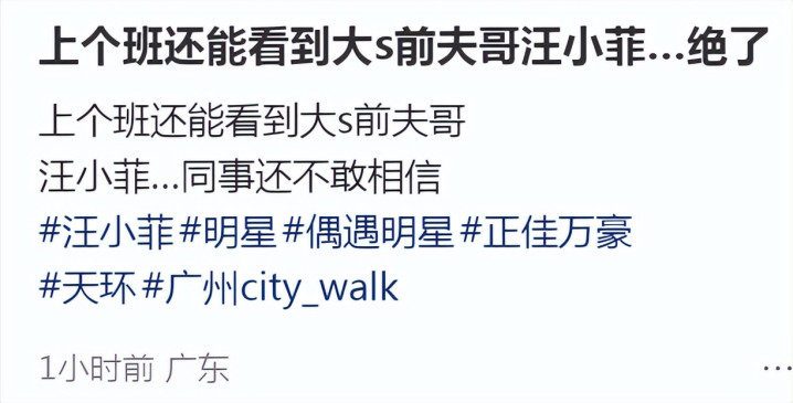 话说回来,因为现场并未看到大S一双儿女身影,为此,有网友好奇小玥儿姐弟有没有去。而刚刚,有网友就分享出在广东偶遇到大S前夫汪小菲动态。