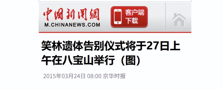 《笑林遗体告别典礼将于27日上昼在八宝山举行》- 中国新闻网、