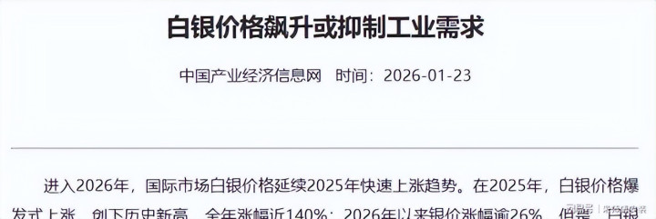 华尔街并非看重白银工业价值,而是操控价格,意图切断中国光伏、新能源的“工业血液”。