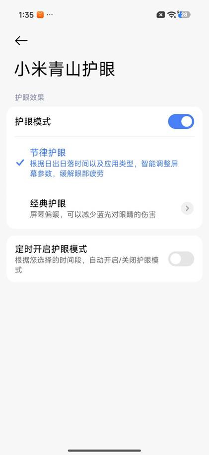 作为每天面对屏幕超过6小时的"重度用户",我对手机的护眼功能格外关注。Turbo 5在这方面给出了令人安心的解决方案:它采用DC调光+3840Hz高频PWM调光的混合方案,即使在深夜低亮度环境下刷手机,眼睛也不会感受到那种难以名状的疲劳感。配合小米青山护眼方案的节律护眼2.0功能,屏幕会根据时间自动调整色温,夜间减少蓝光刺激,帮助用户维持正常的生物钟,并且该机还通过了"视觉维度S++认证"和"TÜV莱茵三重护眼认证"。在实际使用中,在暗光环境下连续阅读电子书两小时后,眼睛的干涩感明显比使用低频PWM调光的手机要轻得多。