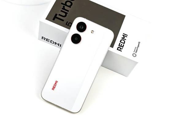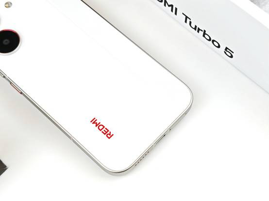 背部上方,Turbo 5的后置相机模组设计延续了整机"至简美学"的理念。双摄系统以竖直排列的方式嵌入背板左上角,两颗镜头外围的金属装饰环采用了与机身同色的处理,减少了视觉上的割裂感。主摄周围的红色点缀(在祥云白配色上尤为明显)为整机增添了一丝活力。