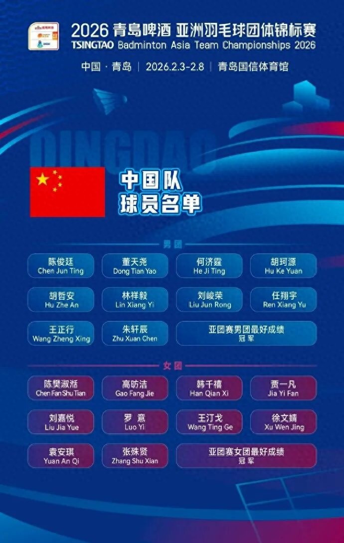 2026亚洲羽毛球团体锦标赛将于2月3日-8日,在青岛国信体育馆拉开战幕,羽坛各路球星已经在青岛集结。亚洲羽毛球团体锦标赛创立于2016年,由亚洲羽毛球联合会主办,双数年举办男团和女团赛,单数年举办混合团体赛,同时也作为同年汤尤杯或苏迪曼杯的亚洲区资格赛。