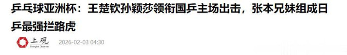 上观新闻——乒乓球亚洲杯:王楚钦孙颖莎领衔国乒主场出击,张本兄妹组成日乒最强拦路虎