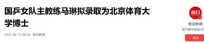 在2025年6月就已经收到拟录取的通知,相信之后的马琳能以更扎实的学术理论助力国乒赛场。