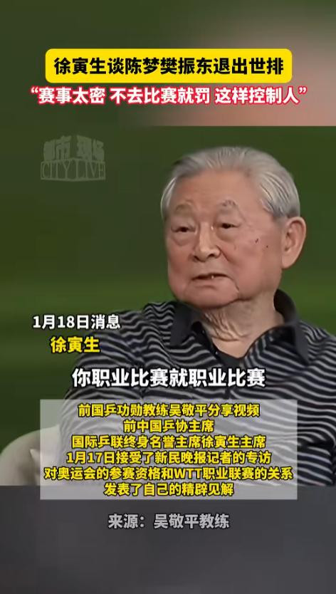 徐寅生的核心质疑有三点,用商业赛积分绑架奥运资格、赛程密集压榨运动员健康、国家培养的运动员不该给商业联赛当牛马。
