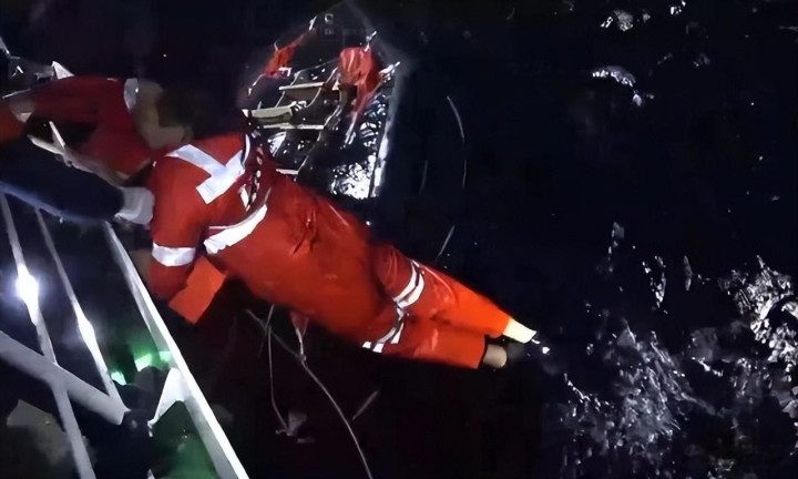 船主迅速发求救信号,但船很快就翻了,扫数进程没几分钟。船员跳海,持着救生筏在暮夜里漂。