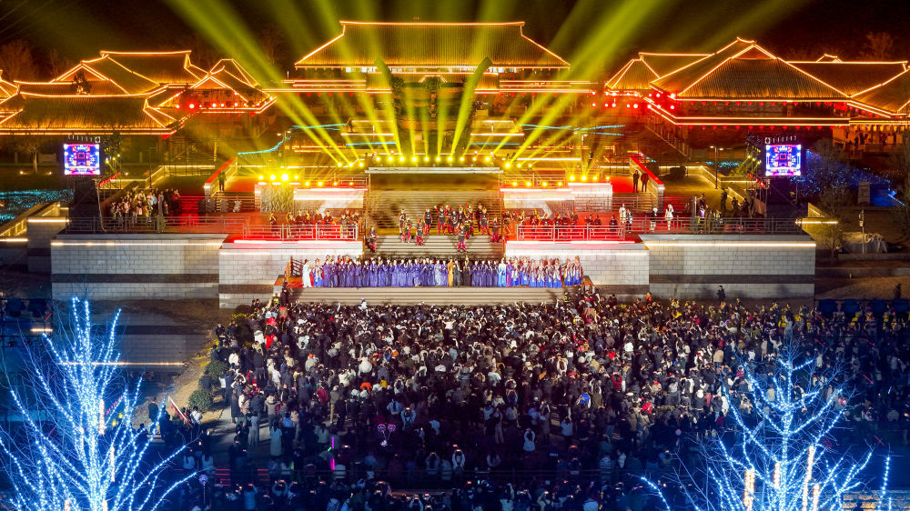 “荆州十二时分·楚乐八百年”在荆州纪南生态文化旅游区演出,再现楚国光辉历史。(张梦瑶 摄)
