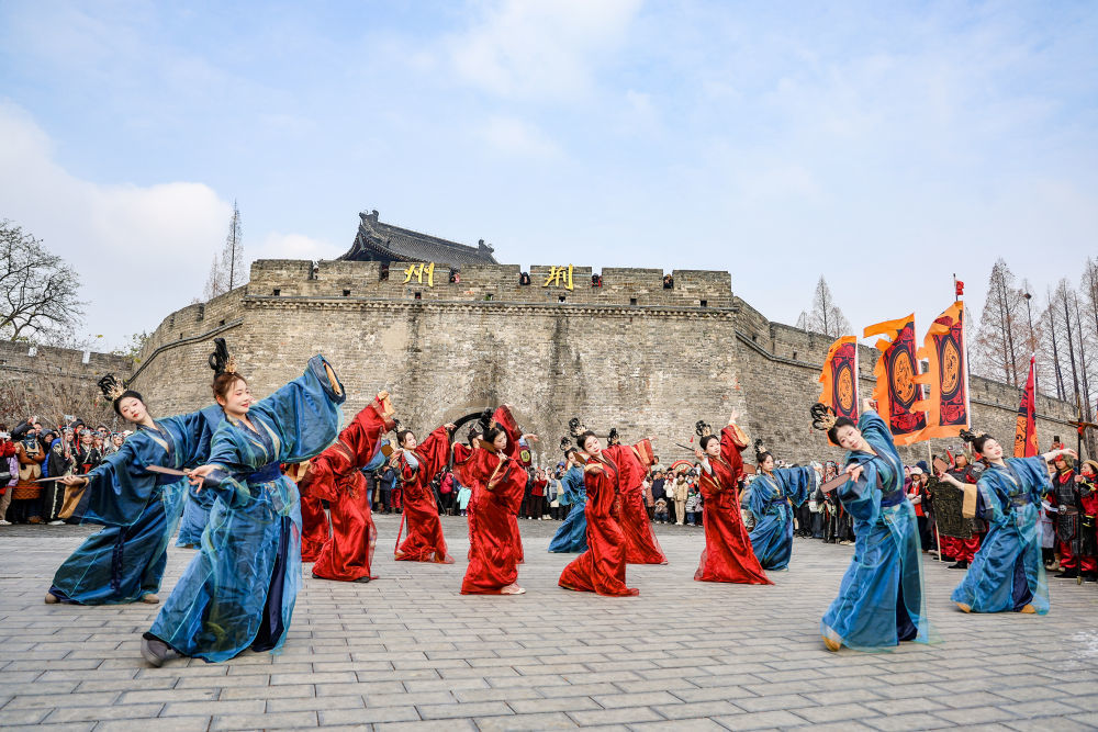 “荆州十二时分”入城庆典在荆州古城演出。(张梦瑶 摄)