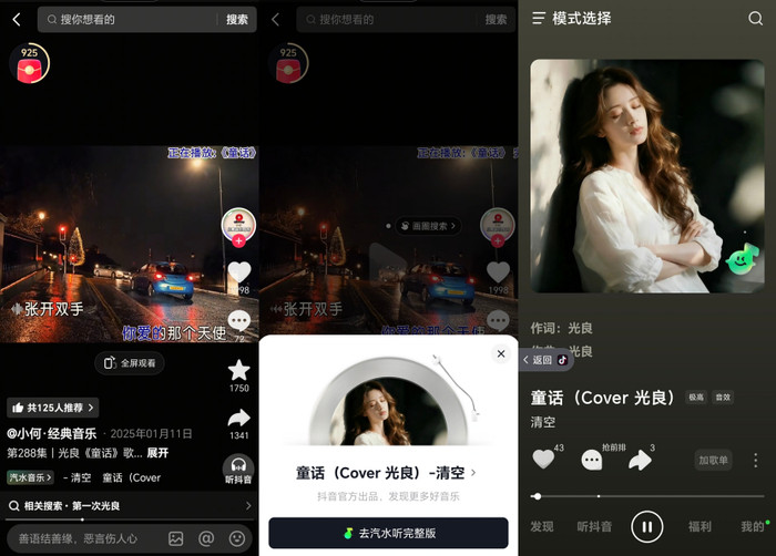 不少歌曲,竟然在用AI低仿版本伪装正版,从抖音中直接用正版歌曲的推广片段作为引导,将用户导流到汽水音乐听“完整版”的“假歌”?
