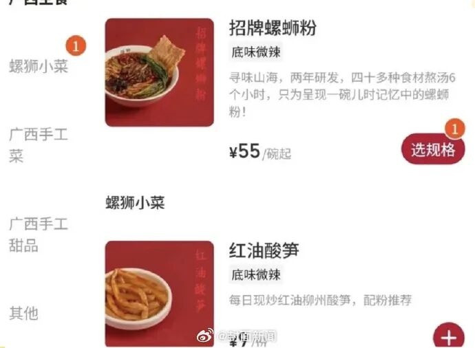 近日,不少网友在社交平台反映,知名茶饮店“阿嬷手作”旗下开出螺蛳粉品牌门店,店名为“鑼獅LUÓSHĪ”,售价远高于普通螺蛳粉。有网友称三人消费共计392元,也有网友直言“55元一碗螺蛳粉,是我吃过最贵的螺蛳粉了”。