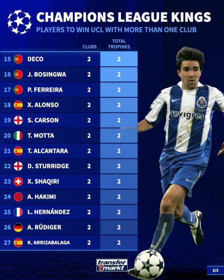 卢卡斯·埃尔南德斯(2家俱乐部)——2冠